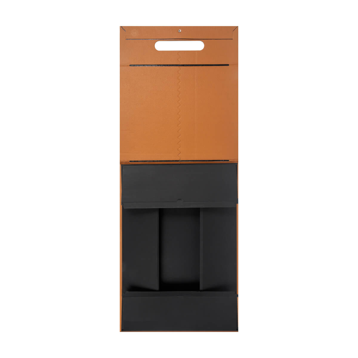 MATERIAL: Cartón / Curpiel MEDIDAS: 31 x 25.5 x 10.2 cm IMPRESION: Serigrafía MED. EMPAQUE: 83 x 33 x 30 cm PESO EMPAQUE: 3.45 Kg PIEZAS EMPAQUE: 30