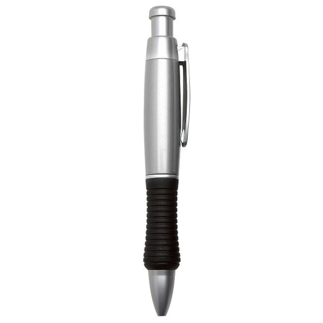 Bolígrafo de plástico con barril en plata y mecanismo de click en color negro ...