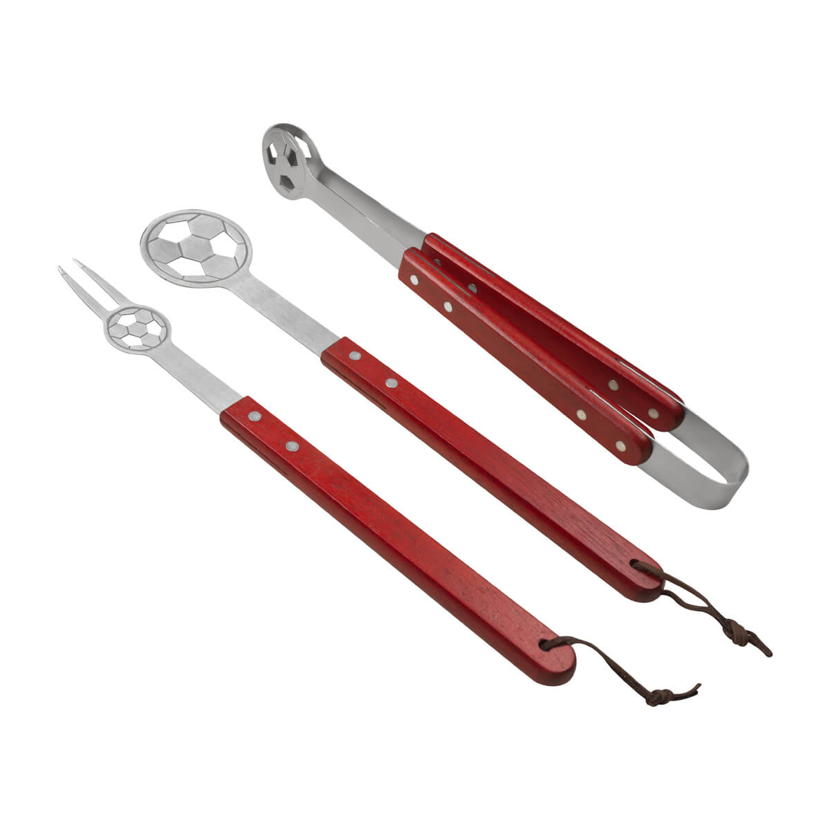 SET BBQ SOCCER - Set de BBQ en delantal con diseño de cancha de fútbol. Incluye espátula, pinzas y tenedor.