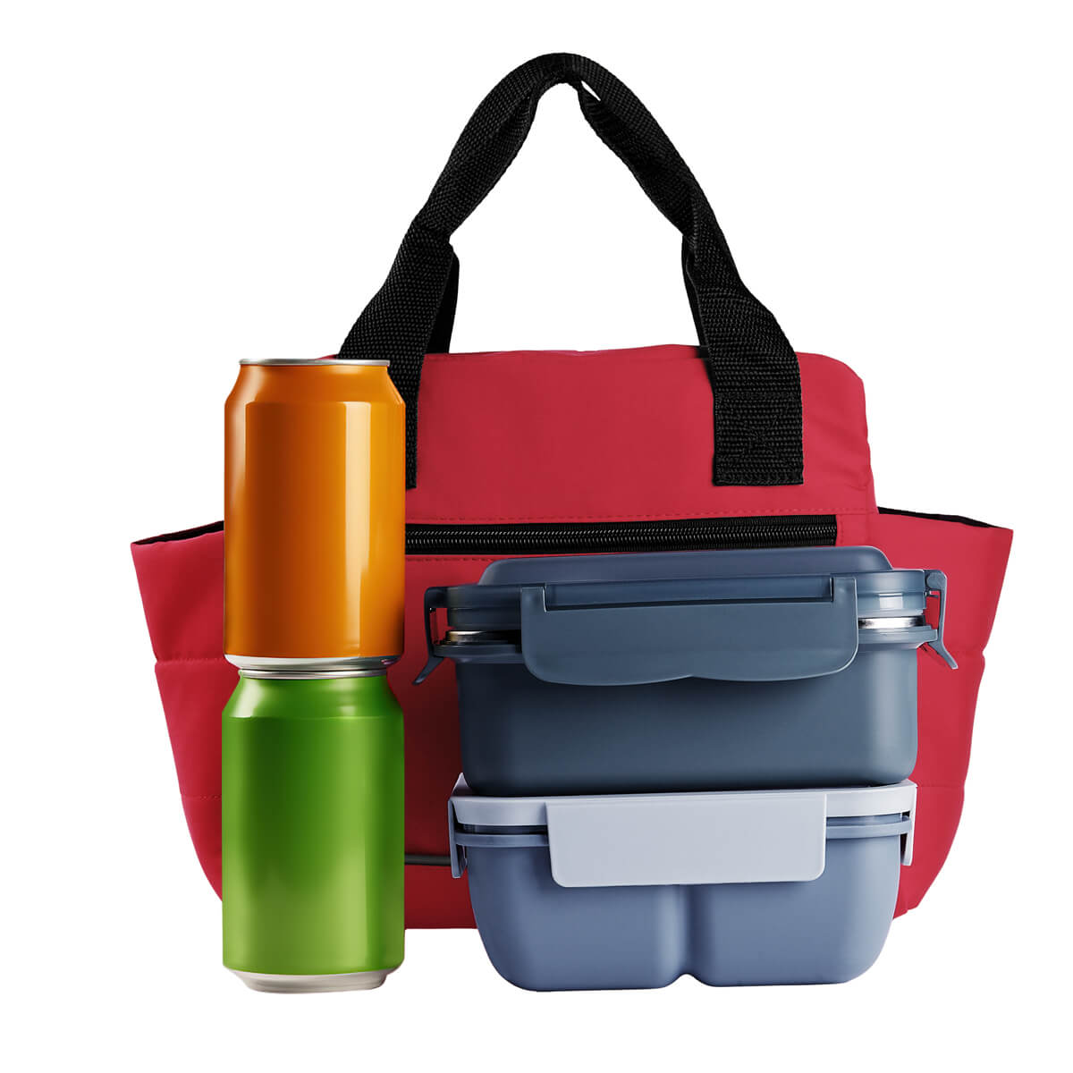 LONCHERA NUAN - Lonchera con interior plastificado. Compartimento principal con cierre, dos bolsillos laterales y un bolsillo frontal también con cierre, ideal para llevar contigo pequeños snacks. Adicional, agregar un detalle reflejante en la parte frontal, lo que aporta un toque de diseño. Ideal para escuela u oficina, lleva tus alimentos con estilo y de forma segura. Capacidad 12 latas.