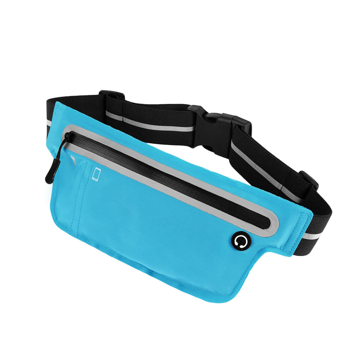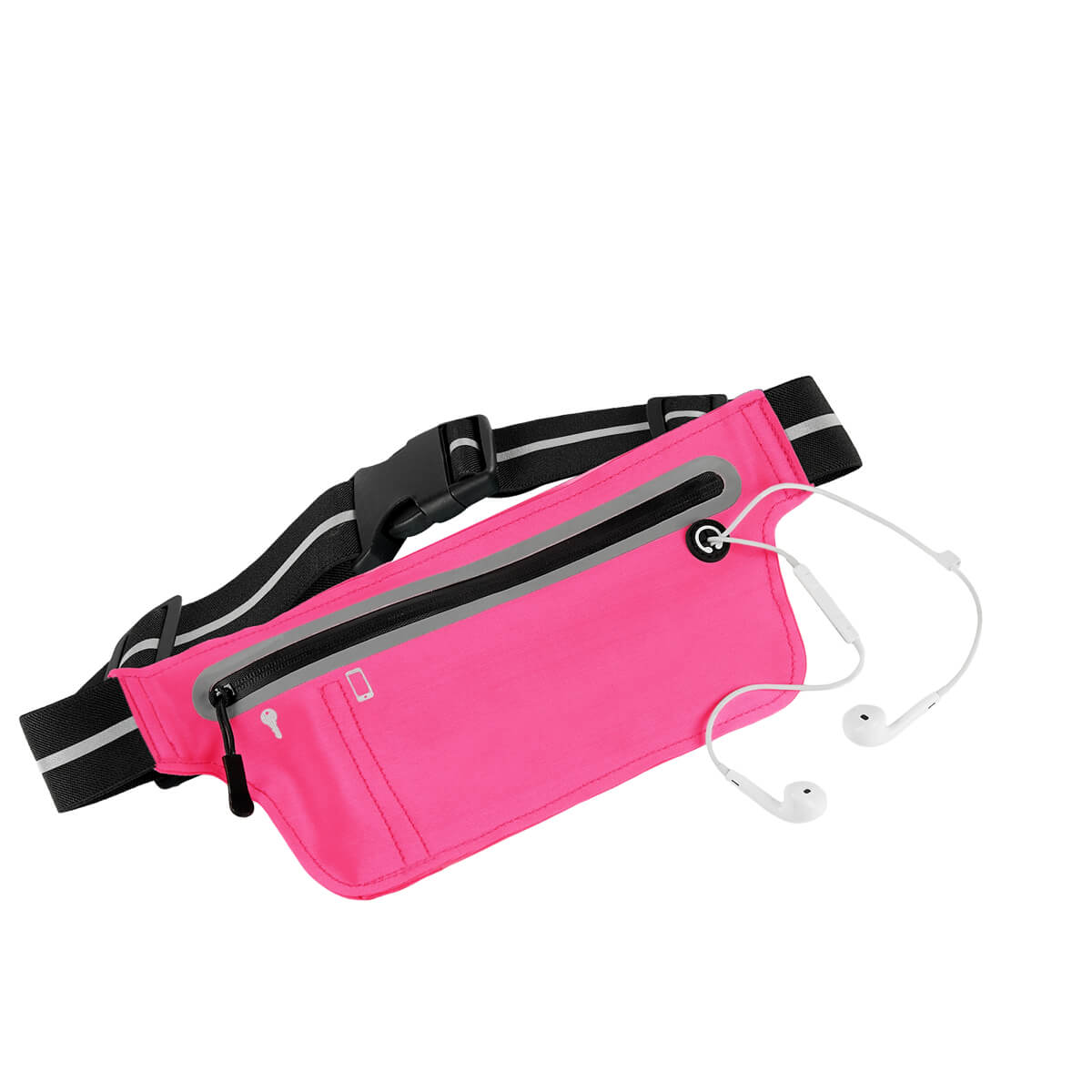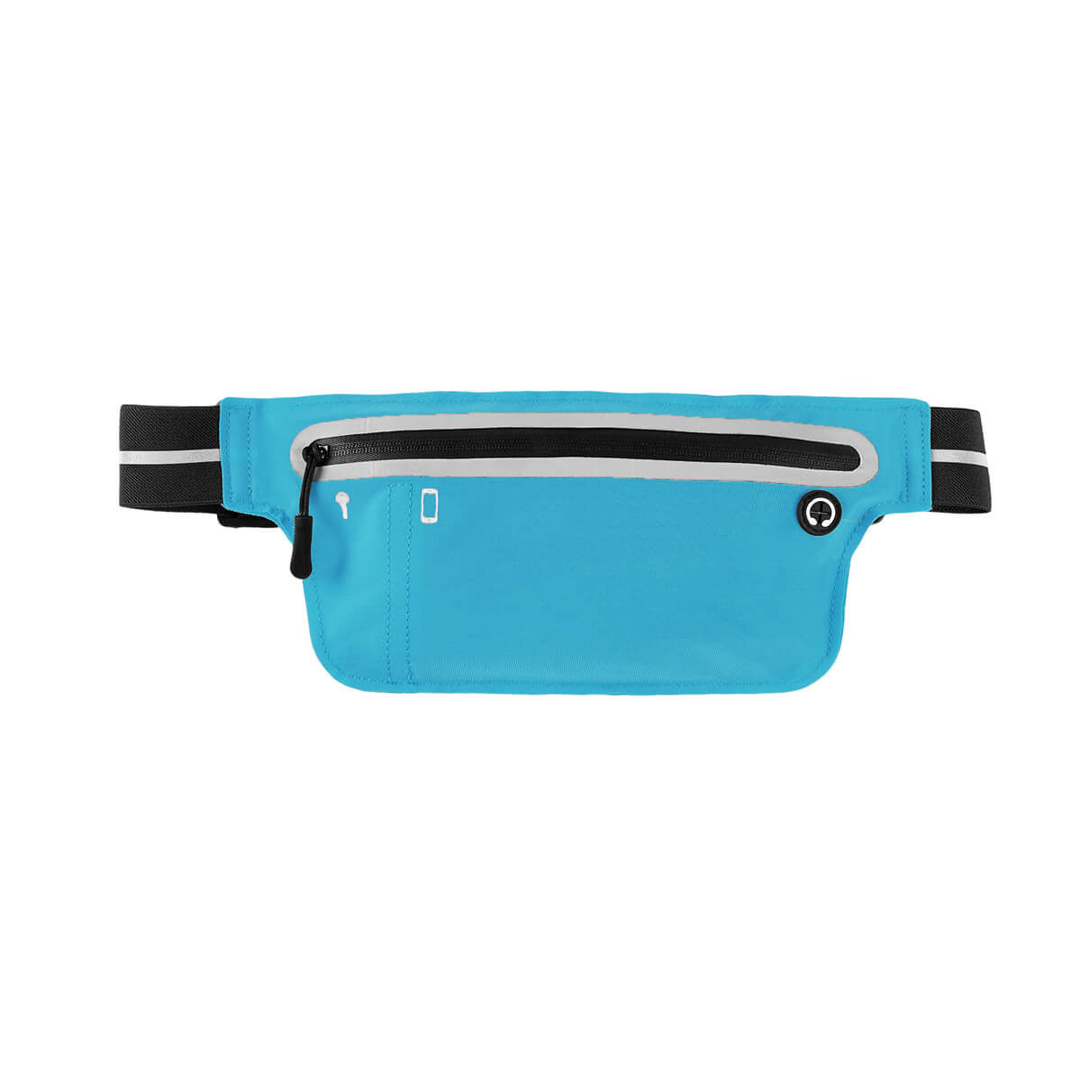 CANGURERA FIXA - Cangurera deportiva ligera. Incluye interior plastificado. Ofrece resistencia al agua y comodidad en todo momento. Su compartimento con cierre y puller con correa permite guardar lo esencial, mientras que la salida para audífonos con cable te acompaña con música en cada paso. La banda elástica con broche de plástico se adapta fácilmente al cuerpo, y sus detalles reflejantes en cinturón y cuerpo brindan visibilidad extra en condiciones de poca luz.