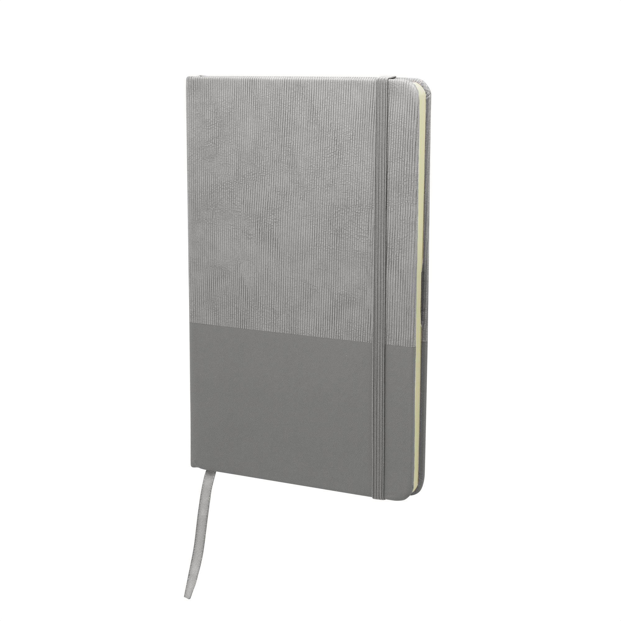 Libreta "GAM" Libreta. Tapa de cartón de 1,8 mm recubierta en poliuretano bicolor con textura suave al tacto. Interior de 80 hojas rayadas en papel obra crema de 70g. Encuadernación cosido. Incluye cinta señaladora del color de la tapa. Cierre con banda elástica del mismo color