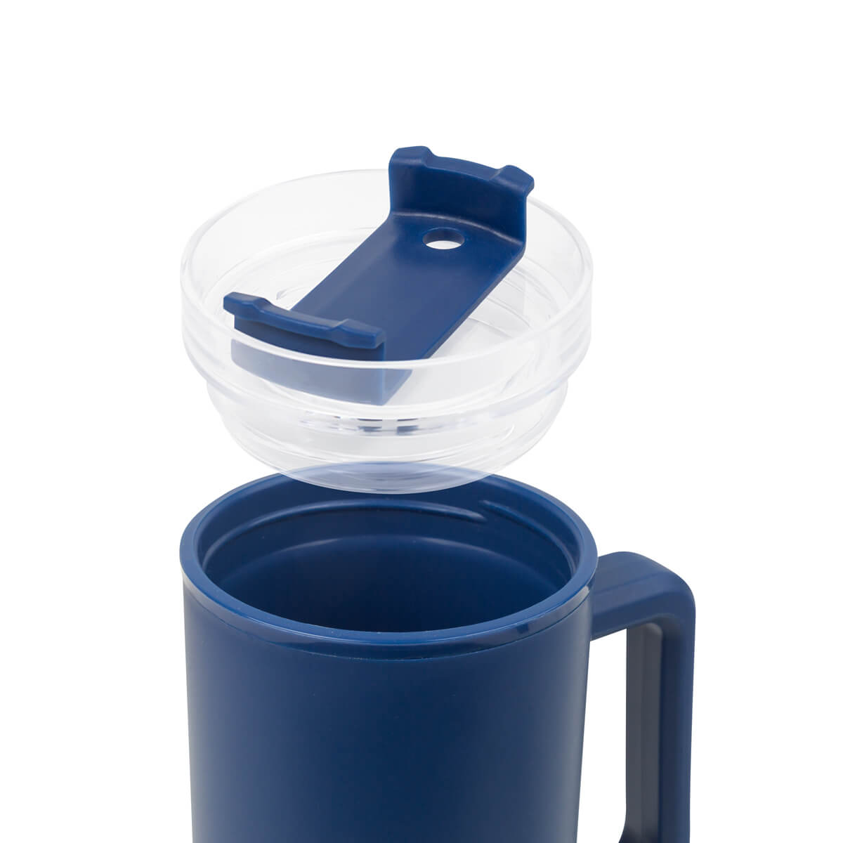 TERMO EDAN - De doble pared. Pared interna y externa de plástico. Tapa de plástico con cierre de rosca. Sobre tapa giratoria de plástico con opción para beber con popote o boquilla tradicional. Capacidad de 30 Oz. Base de 7 cm de diámetro. Incluye popote de plástico y caja individual.