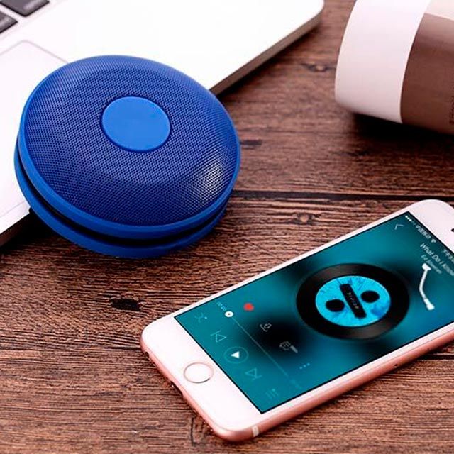 BOCINA BLUETOOTH PUCK HI-FI Bocina Bluetooth con batería recargable de alta fidelidad y correa de silicona para colgar. Incorpora función manos libres para llamadas teléfonicas. Rango de conexión 10 metros. Se incluye cable cargador USB