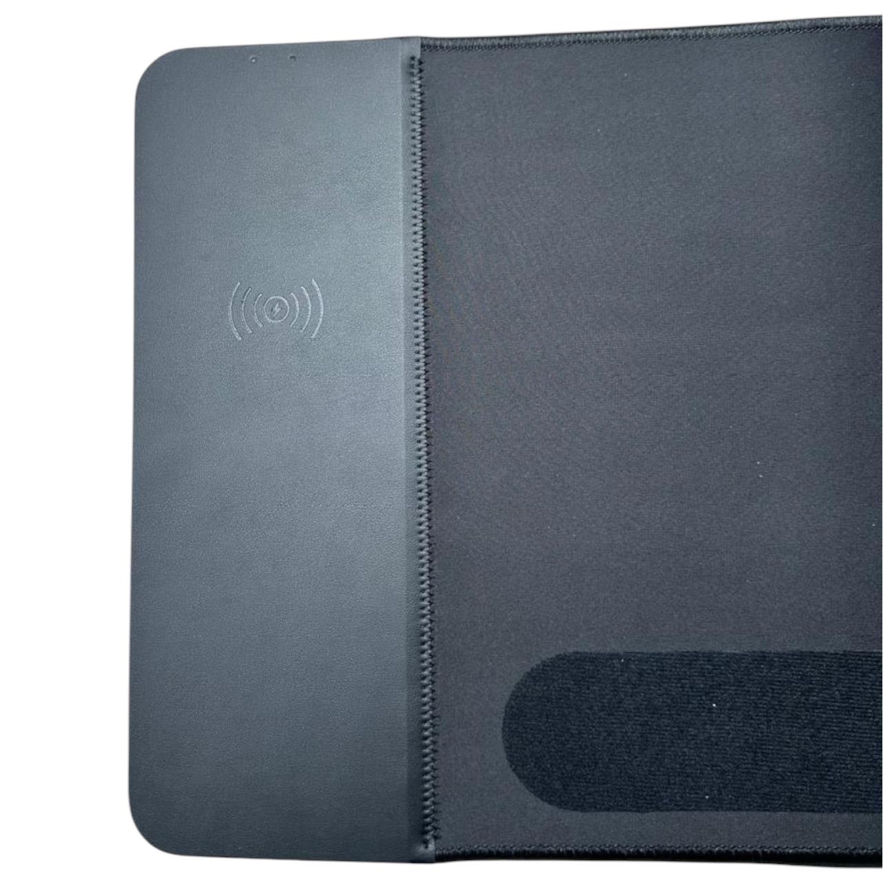 TAPETE PARA ESCRITORIO EXTRA LARGO Mouse pad con cargador Wireless Qi de 15w, resistente al agua, antideslizante y con soporte ergonómico para la muñeca.
