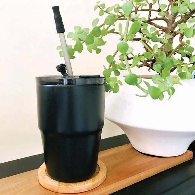 Termo Potus Termo Potus l Capacidad: 580 ml l Sistema de doble pared al vacío. l Insertable al auto. l Base antiderrapante l Tapa a presión y popote con boquilla de silicón l Colores: Blanco y Negro.