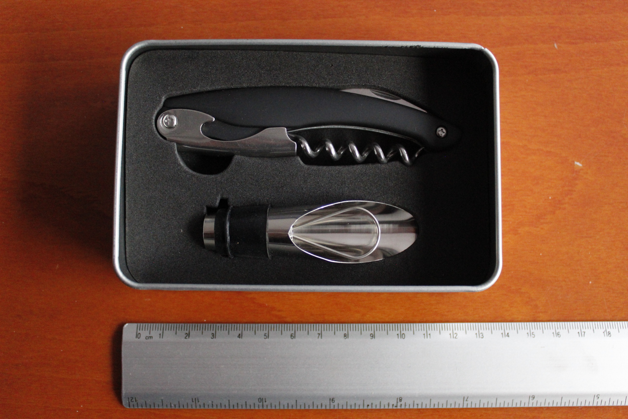 Set para vino Sendai. - Set para vino, incluye un sacacorchos con navaja y desta...