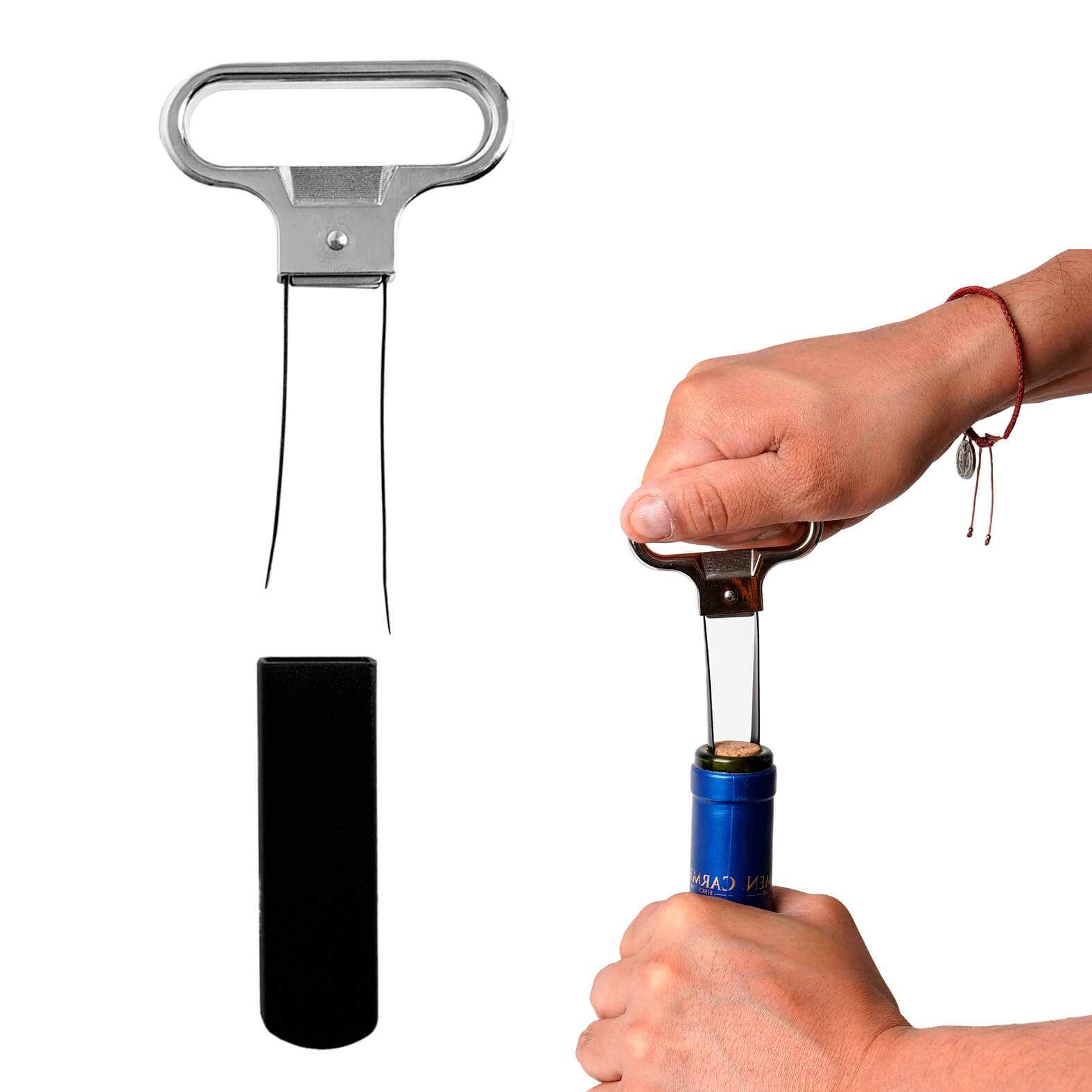 BAGA Sacacorchos y destapador de laminas con funda de plástico....
