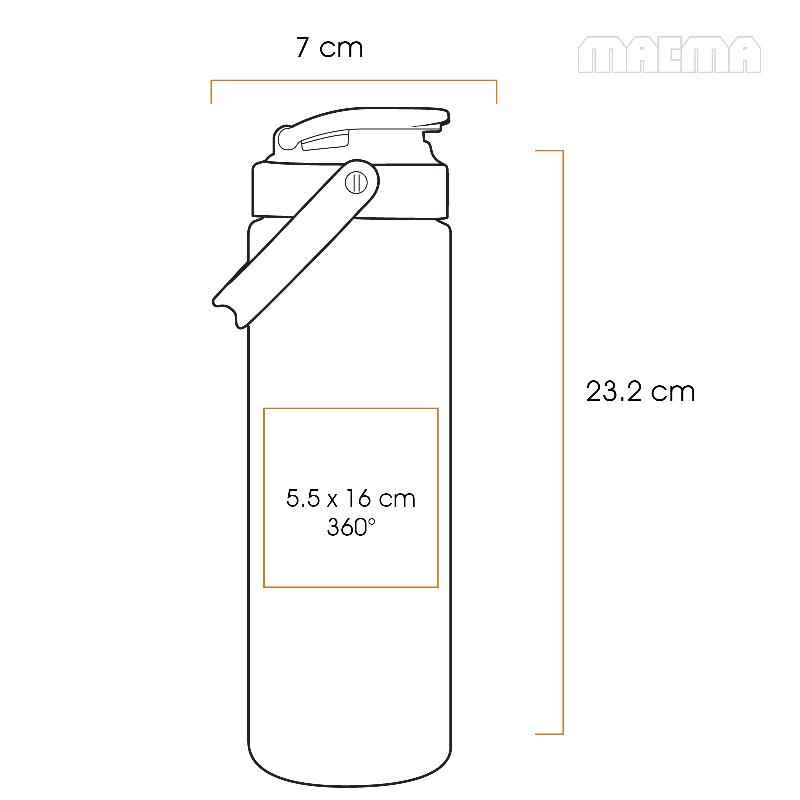 KIRBY Cilindro de plástico PET con tapa colgante anti derrames, capacidad de 750 ml.
