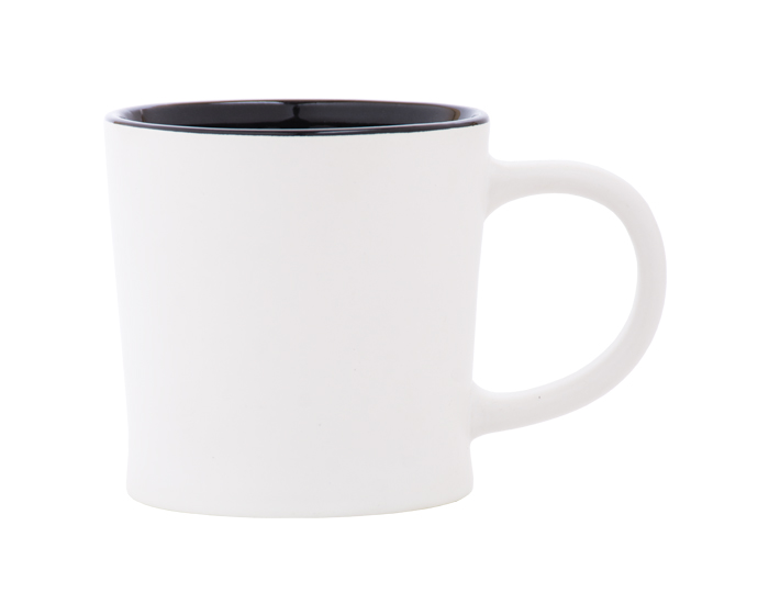 CYLIN - Taza de cerámica bicolor con asa. Textura interior de ondas. CAP. 11 OZ. Venta en múltiplos de 12.