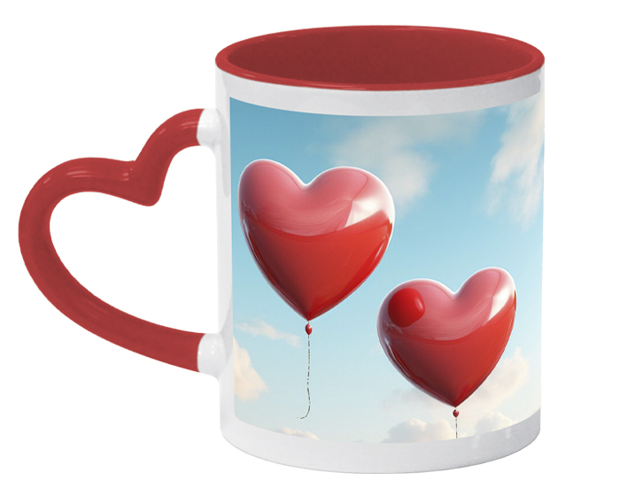 DEAR - Tarro de sublimación de cerámica blanco con asa en forma de corazón. El interior y el asa son del mismo color. CAP. 325 ml. (11 OZ). Venta en múltiplos de 12.