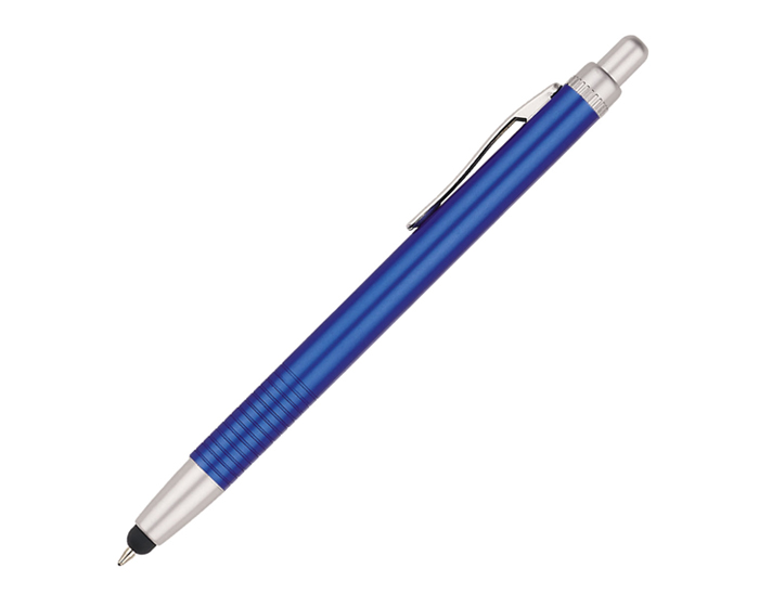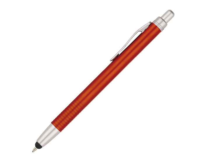 BRAD - Bolígrafo de aluminio con punta touch para pantallas táctiles. Cuenta con botón, clip y punta en color plata, cuerpo en diferentes colores y pequeñas hendiduras en la parte inferior para una mejor sujeción. Mecanismo de click.