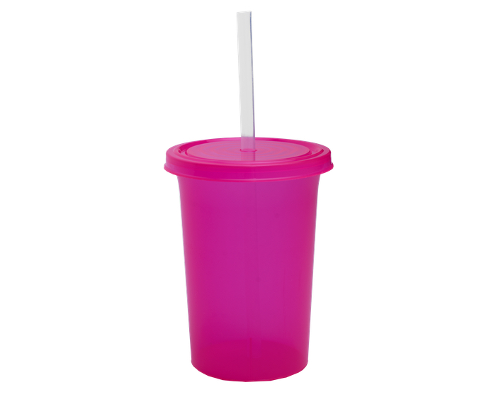 OLAS - Vaso de plástico con tapa a presión y popote. La tapa cuenta con un diseño que simula olas. CAP. 470 ml. *BPA FREE.