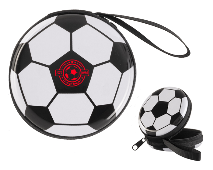 MARATO - Estuche monedero en forma de balón de soccer, cuenta con cierre lateral doble y jareta.