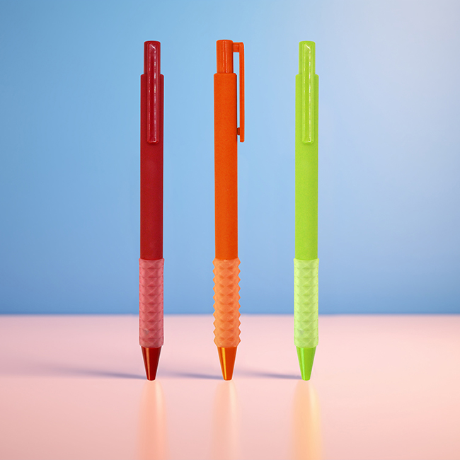 Bolígrafo Homer • Plástico.• Grip ergonómico con acabado en rubber.• Mecanismo retráctil.Material: PlásticoMedidas: 15 × 1 cmÁrea de impresión: 2 × 0.7 cmImpresión: Tampografía