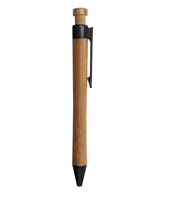 BUNGALO - Boligrafo de bambú, con botón, punta y clip metálico. Mecanismo de ...