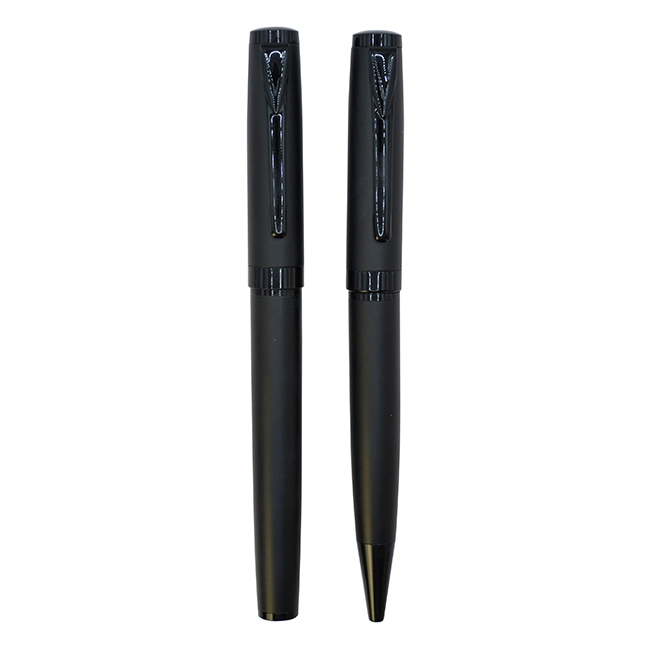 Set de Bolígrafos Basquiat Set de Bolígrafos Basquiat • Juego de bolígrafo y roller ball. • Incluye caja de presentación. • Diseño elegante y acabado metálico. • Ideal para regalos ejecutivos. Material: Metal Impresión: Láser, Tampografía