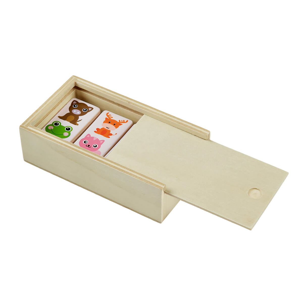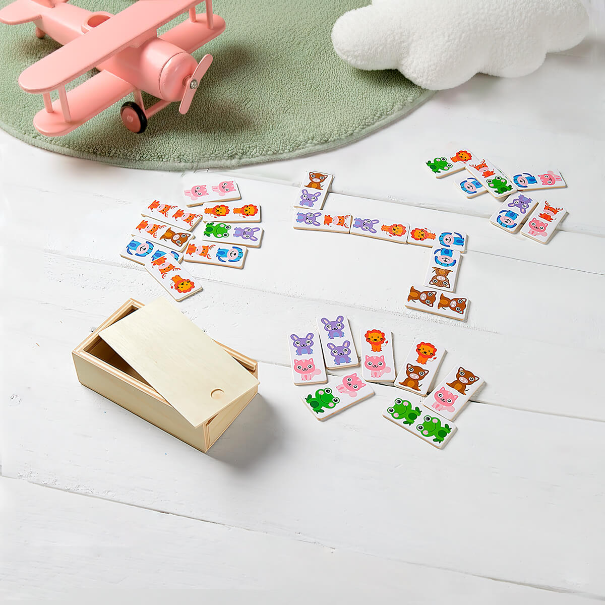 DOMINÓ LAHTI - Incluye 28 fichas con adorables ilustraciones de animalitos. Ideal para estimular la memoria y la lógica de forma entretenida. Viene en una práctica caja de madera que facilita su almacenamiento y transporte. La madera es un producto natural el cual puede presentar variaciones en tonalidades y vetas. Incluye caja Individual.