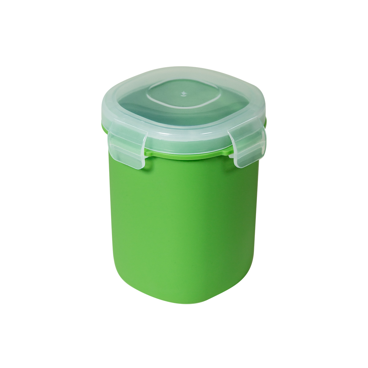 VASITO CONTENEDOR KEOP - Vasito contenedor de plástico con tapa con cuatro pestañas y sello hermético para evitar derrames. Compacto y versátil, es perfecto para llevar tus snacks sin preocupaciones.