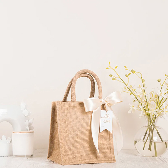MATERIAL: Yute MEDIDAS: 30 x 30 x 19 cm MED. EMPAQUE: 31 x 31 x 50 PESO EMPAQUE: 10 kgs PIEZAS EMPAQUE: 50 pcs