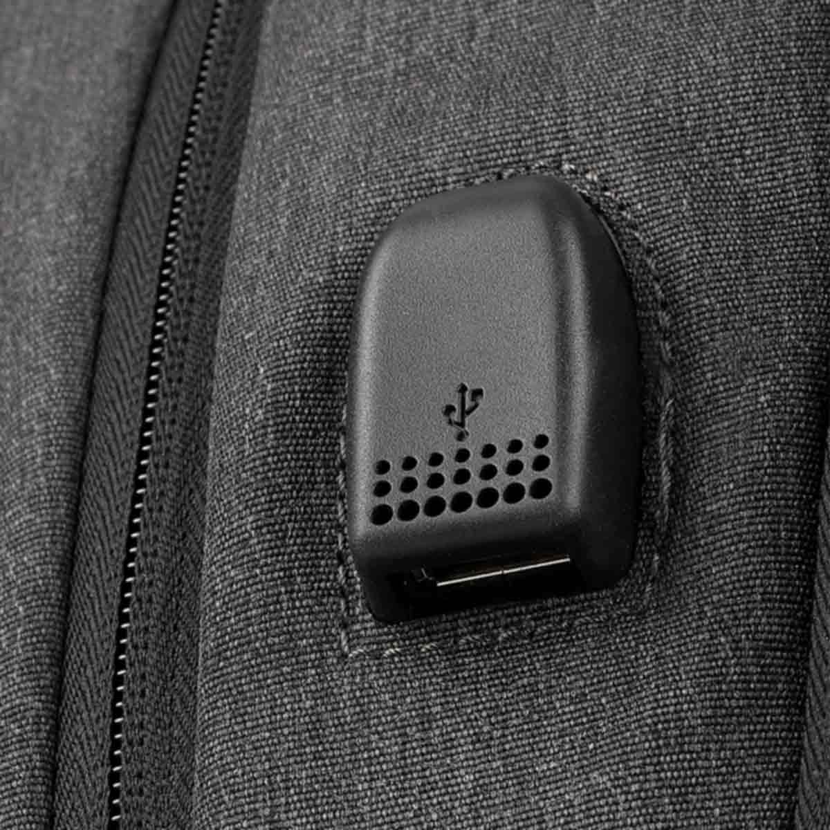 MOCHILA ATENA - Mochila con salida USB (se requiere conectar a batería portátil) para cargar smartphone. Compartimento interno para laptop de 14". Compartimento principal con dos bolsas de red. Bolsa interna con cierre. Bolsa frontal con organizador de documentos. 2 Bolsas laterales con elástico. Bolsa trasera con cierre oculto. Aditamento especial para poner en trolley. Respaldo y tirantes acojinados. Incluye placa metálica para grabado.