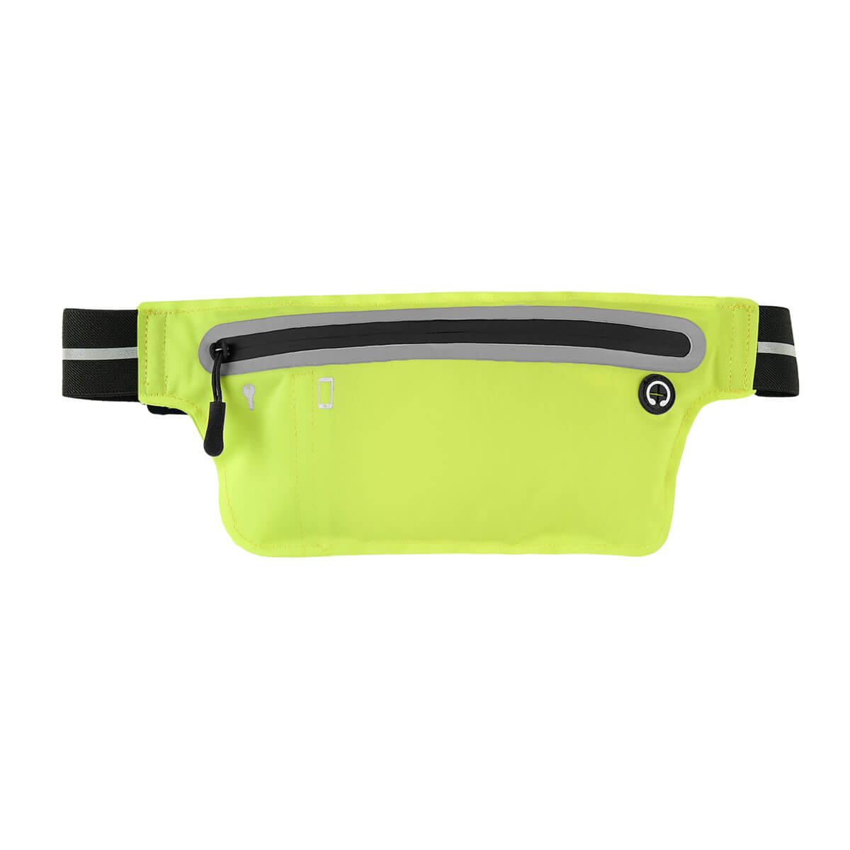 CANGURERA FIXA - Cangurera deportiva ligera. Incluye interior plastificado. Ofrece resistencia al agua y comodidad en todo momento. Su compartimento con cierre y puller con correa permite guardar lo esencial, mientras que la salida para audífonos con cable te acompaña con música en cada paso. La banda elástica con broche de plástico se adapta fácilmente al cuerpo, y sus detalles reflejantes en cinturón y cuerpo brindan visibilidad extra en condiciones de poca luz.