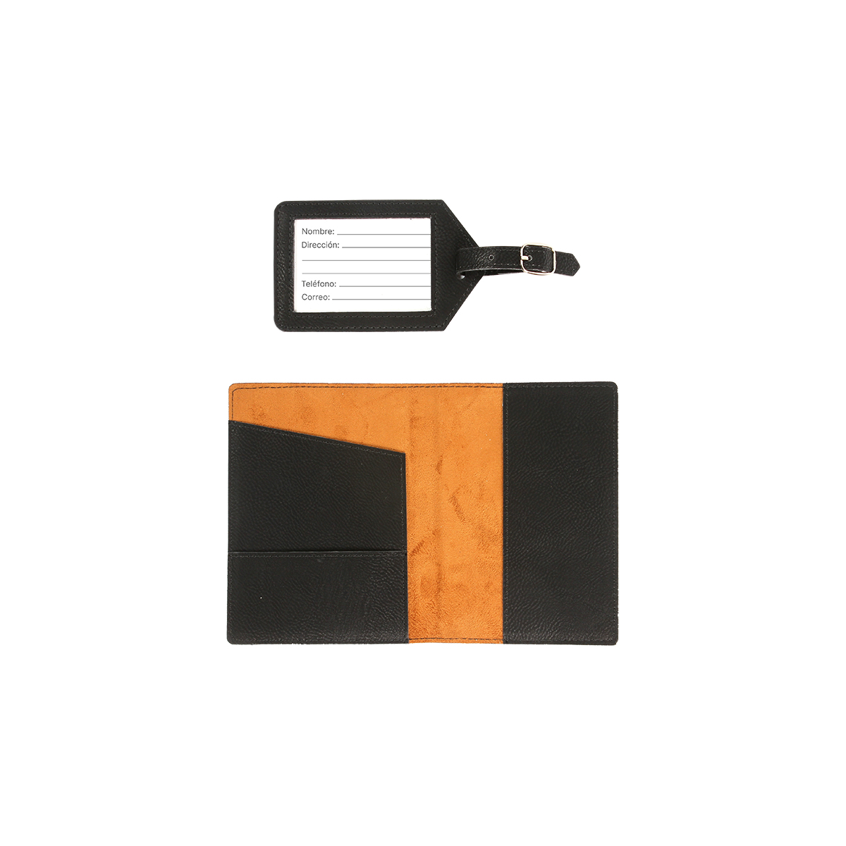 MEDIDAS: Identificador: 11x7.1x0.3 cm. | Porta pasaporte: 14x10.5x0.6 cm. MED. EMPAQUE: 46x39x39 PIEZAS EMPAQUE: 40