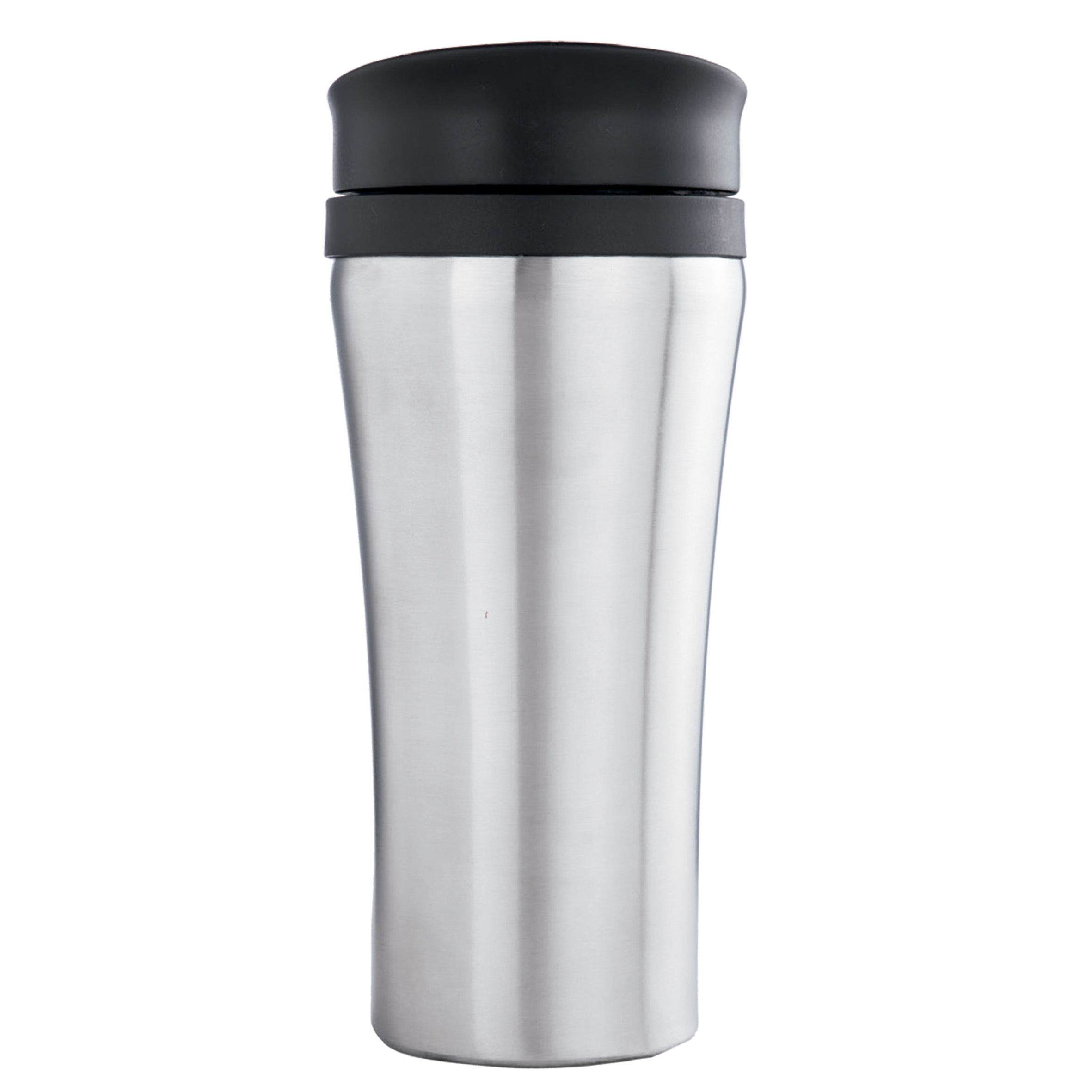 MIKA Termo con doble pared de acero inoxidable, tapa hermética enroscable y botón de seguridad para evitar derrames.
