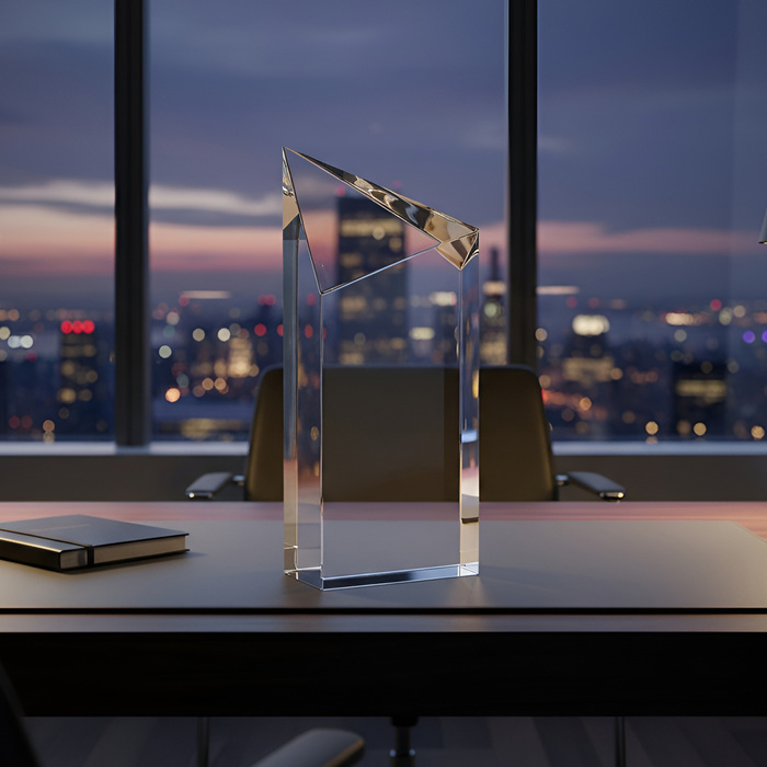 Trofeo "WINNER IV" Trofeo de vidrio facetado simil cristal.