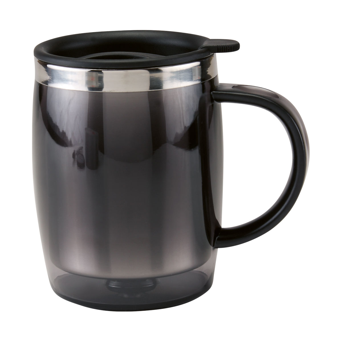 TAZA TÉRMICA BURGOS - Doble pared. Pared interna de acero inoxidable y externa de plástico. Incluye válvula de seguridad giratoria con tapa de presión. Incluye caja individual. No usar en microondas ni lavavajillas.