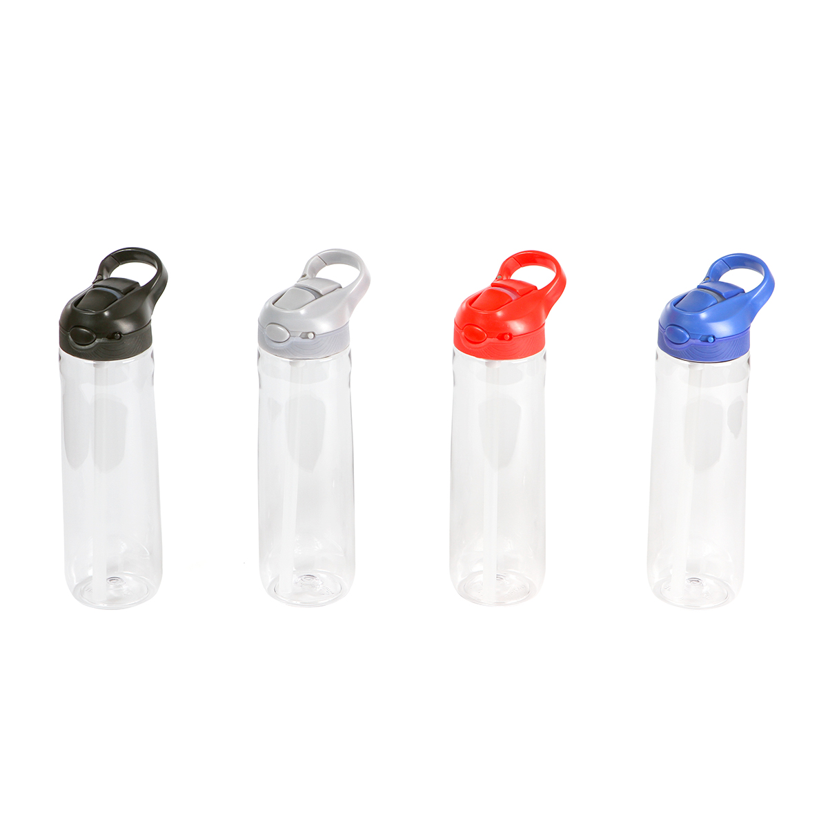 Botella Oland. - Botella con cuerpo transparente y tapa con bloqueo de seguridad, cuenta con boquilla de silicona y agarradera de color, fabricada en tritán y ABS. Capacidad de 750 ml, peso de 183 g.