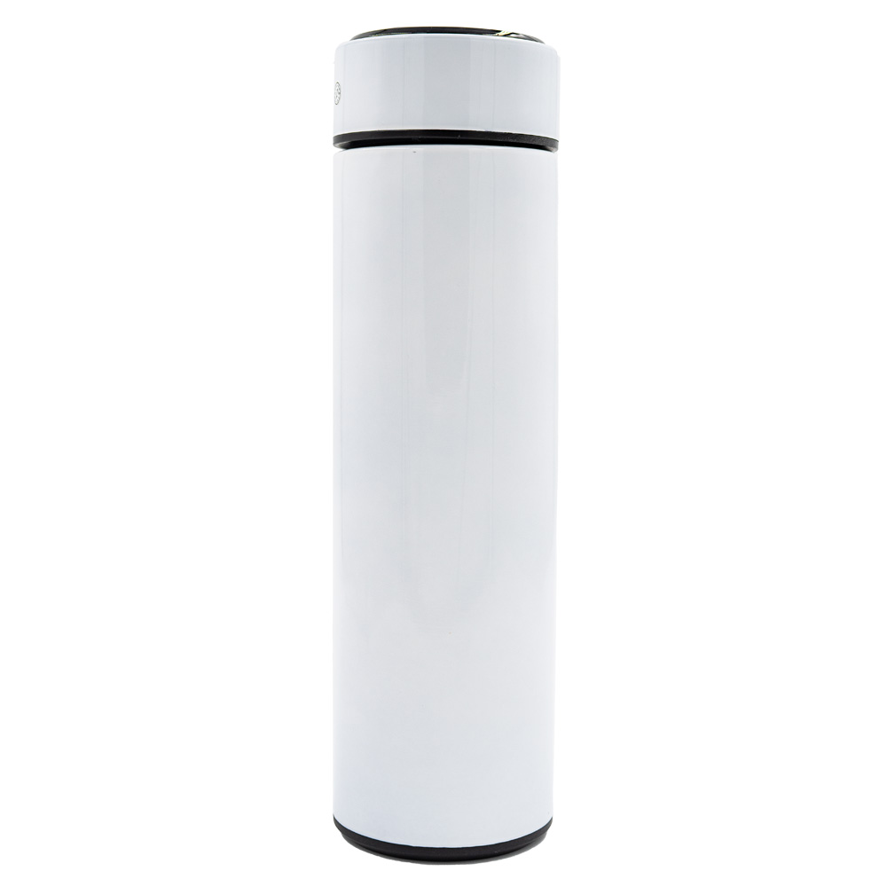 TERMO DIGITAL SMART 500ml Elegante termo con capacidad de 500 ml fabricado en acero inoxidable grado alimenticio recubierto con pintura para un mejor agarre (excepto color plata). Cuenta con una pantalla digital en la tapa que muestra la temperatura real del líquido (se enciende al tocar la superficie superior de la tapa). Incluye -1 Batería CR2023 (instalada) -1 Filtro para té