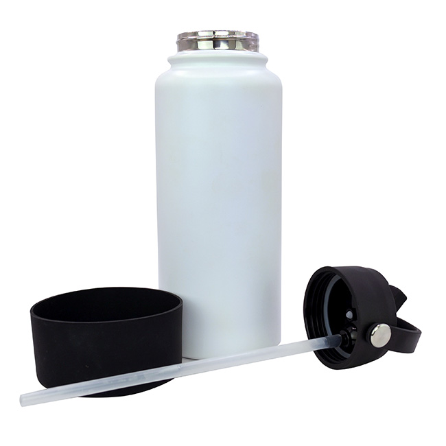 Termo Sabino Termo Sabino • Capacidad: 1 litro • Sistema de doble pared al vacío para conservar temperaturas por más tiempo. • Tapa en rosca con asa rotativa, boquilla deslizante y popote. • Incluye funda protectora antiderrapante en la base. • Colores disponibles: Blanco y Negro Material: Acero inoxidable Impresión: Full Color 360 Regular, Láser, Tampografía, Full Color 360 Manga