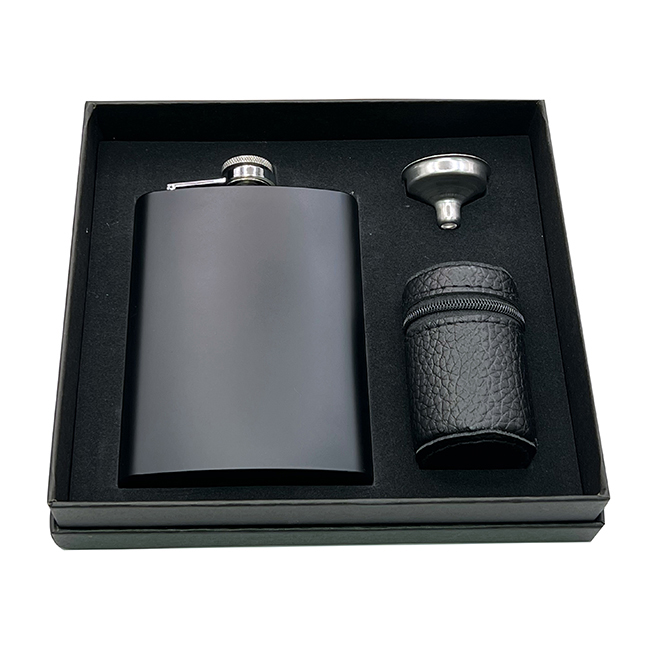 Set Licorera Coñac Set Licorera Coñac • Capacidad: 220 ml. • Tapa en rosca. • Incluye embudo y 4 vasos-shot en estuche de curpiel. • Fabricado con acero inoxidable y estuche premium. Material: Acero inoxidable. Estuche curpiel. Impresión: Láser, Tampografía
