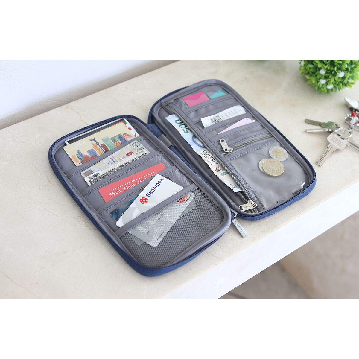 Porta documentos Dukhan. - Porta documentos fabricado en poliéster, con, bolsillo frontal, múltiples compartimentos para tarjetas, pasaporte, billetes, monedas, etc. Súper práctico y cómodo para guardar los documentos más importantes. Una opción súper práctica y cómoda para mantener tus documentos más importantes seguros y organizados.