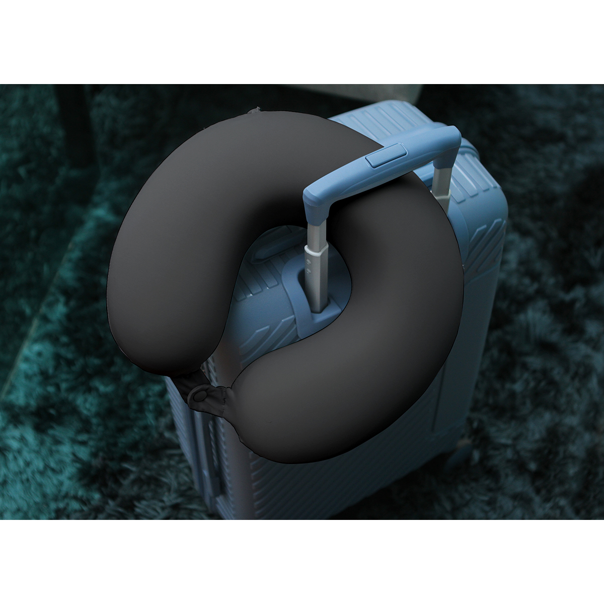 Almohada con contenedor Stoos. - Almohada de viaje en forma de U, fabricada en poliuretano, poliéster y EVA (etil vinil acetato), conocido por sus principales propiedades como suavidad y flexibilidad. Incluye un estuche. Esta almohada compacta está diseñada para brindar soporte y comodidad durante tus desplazamientos. Ideal para viajes largos, se adapta al cuello y se puede plegar fácilmente para guardar en su estuche. Perfecta para un descanso reparador en cualquier lugar.