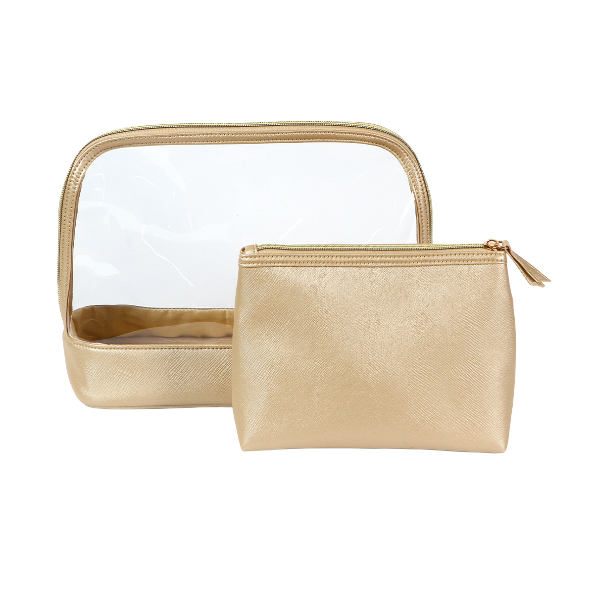 Cosmetiquera Ijevan. - Organiza tus esenciales de belleza y cuidado personal con este práctico juego de dos cosmetiqueras, ideal para viajes o uso diario. Incluye una cosmetiquera grande fabricada en plástico PVC transparente, perfecta para visualizar y acceder rápidamente a su contenido, con cierre seguro y diseño resistente. La segunda es una cosmetiquera pequeña fabricada en curpiel, con un forro interno de poliéster que protege tus productos, y cierre superior para mantener todo en orden. Su tamaño compacto la hace ideal para llevar en la bolsa o como complemento con la cosmetiquera grande. Llévalas juntas o por separado, y mantén todo lo que necesitas siempre a la mano con estilo y practicidad. Compactas, resistentes y ligeras.