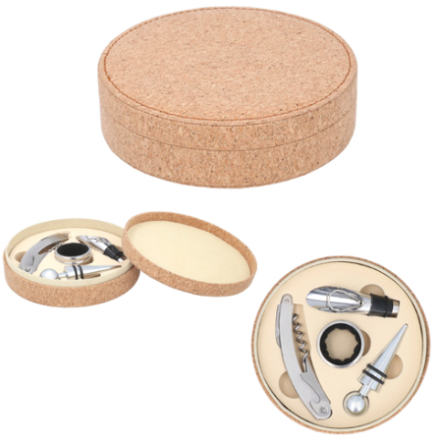 SYRAH Set de vino con estuche de corcho que incluye: sacacorcho, boquilla, corch...